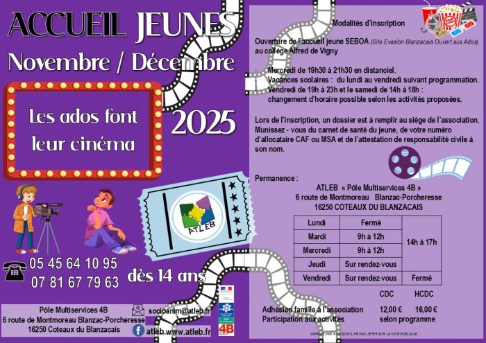 Pour les enfants de 3 à 13 ans, un accueil de loisirs est situé dans les locaux de l’école maternelle de Côteaux du Blanzacais. Il est ouvert de 7h30 à 18h 30 tous les mercredis, et durant les vacances scolaires Lire plus ...